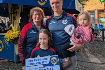 Im Rahmen des diesjährigen Stadtfestes überreichte der Lions Club Grimma einen Scheck über 1.000 Euro an den Hohnstädter SV. Die feierliche Übergabe fand auf der Hauptbühne statt und würdigte die herausragende Jugendarbeit des Vereins.